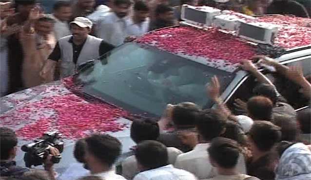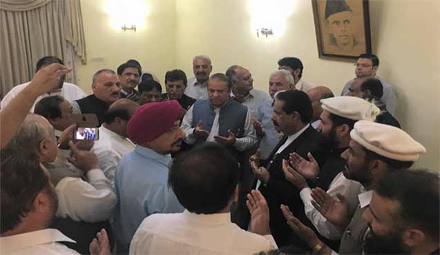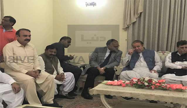 قبل ازیں، صبح راولپنڈٰی سے روانگی سے پہلے سابق وزیر اعظم نے رفقاء سے طویل مشاورت کی۔ پھر نواز شریف گاڑی میں سوار ہوئے اور قافلہ منزل کی جانب چل پڑا۔