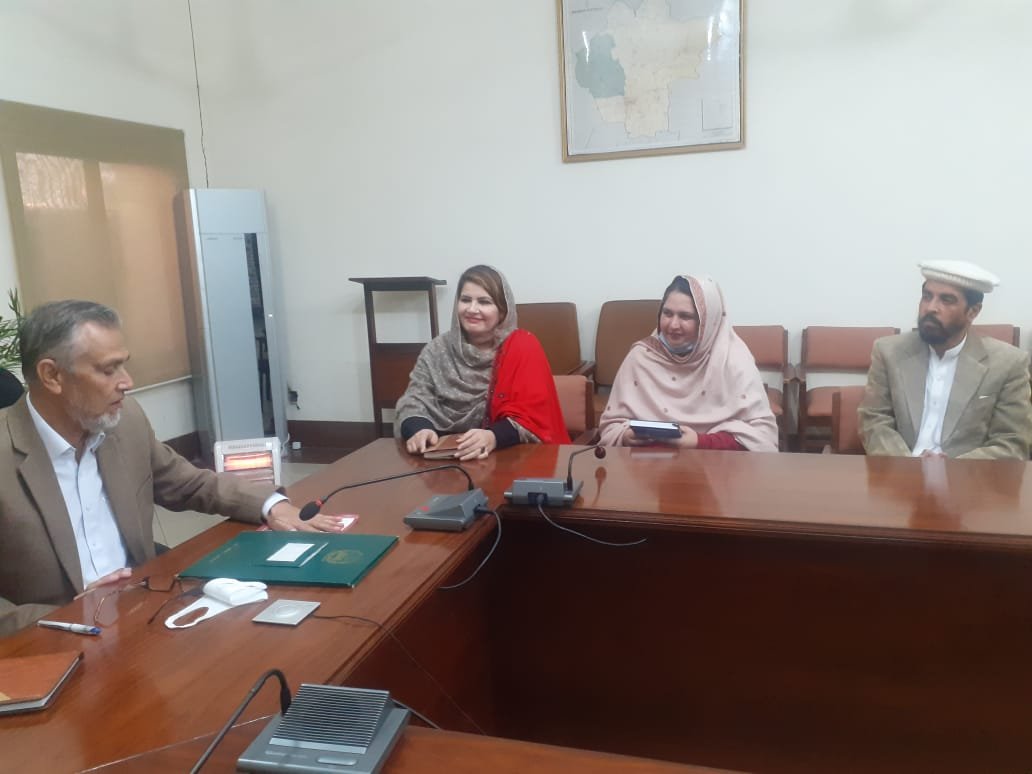 مردان:وومن چیمبر آف کامرس اینڈ انڈسٹری کی صدر میڈم عقیلہ سنبل کی قیادت میں خواتین کا کمشنر مردان ڈویژن منتظر خان سے ملاقات